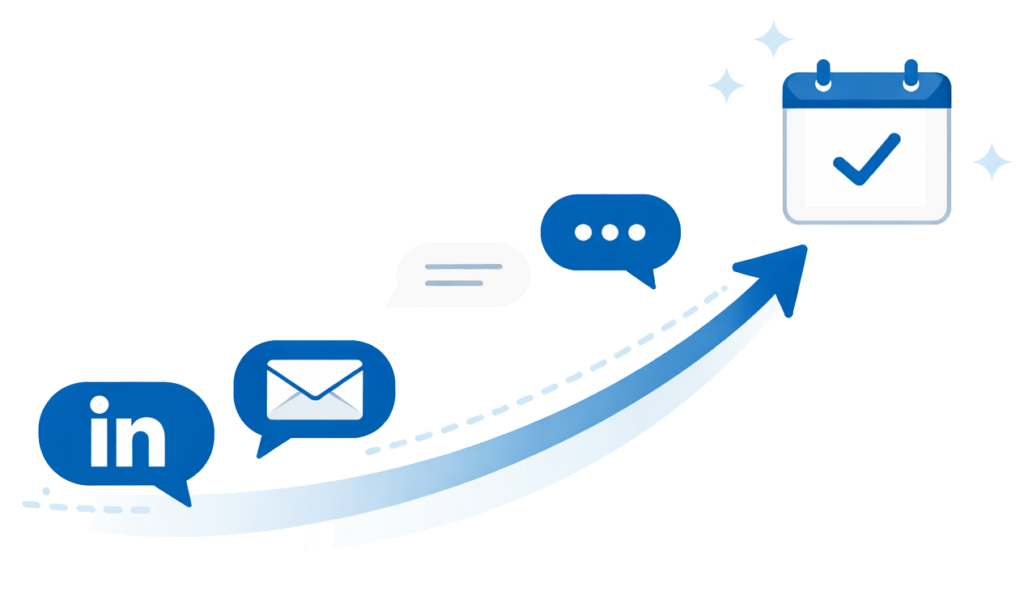We don’t lead with a pitch. We lead with value. Our system drives prospects to your value asset first, earning replies and warm conversations at scale.